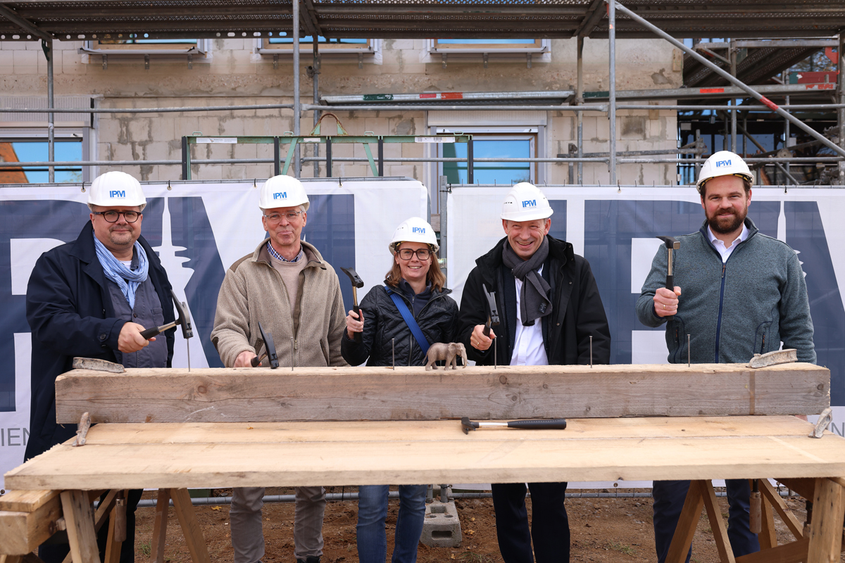 „Den Erweiterungsbau im Auftrag der IPM realisieren zu dürfen, freut uns sehr. Es macht wirklich viel Spaß zu sehen, wie gut wir mit unserer Arbeit hier vorankommen – auch weil alle Beteiligten an einem Strang ziehen. Der Eröffnung des neuen Gebäudeteils im Kita-Jahr 2026/27 dürfte nichts im Wege stehen“, sagt Karl-Heuck-Geschäftsführer Thomas Kolb anlässlich des Richtfests.